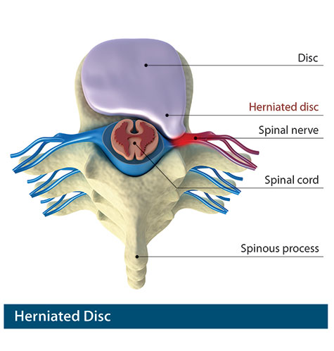In the event of a fall or heavy strain, discs can rupture, causing the